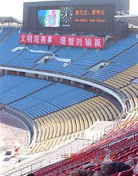 北京为申办2008年奥运会而改建三个重要场馆,其中工人体育场的新型电子显示屏已经基本调试完毕。中新社记者 李刚 摄