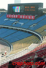 北京为申办2008年奥运会而改建三个重要场馆,其中工人体育场的新型电子显示屏已经基本调试完毕。中新社记者 李刚 摄