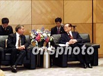 应邀出席《财富》全球论坛香港年会的中国国家主席江泽民,8日下午在香港会展中心会见了美国时代华纳集团首席执行官李文,双方进行了亲切友好的交谈。中新社图 张朔 摄