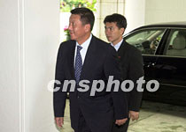 澳门特区行政长官何厚铧五月九日出席香港特区行政长官董建华举办的欢迎江泽民主席的午宴。中新社传真 任海霞 摄
