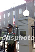 组图:美国驻中国大使馆降半旗表示哀悼 2001年09月12日 10:43 ![]() 美国驻中国大使馆十二日清晨降半旗,对在美国纽约与华盛顿恐怖事件中的罹难者表示哀悼。中新社记者 毛建军 摄 ![]() 美国驻中国大使馆十二日清晨降半旗,对在美国纽约与华盛顿恐怖事件中的罹难者表示哀悼。中新社记者 毛建军 摄