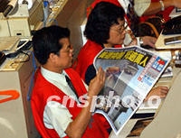 ![]() 9月12日上午,香港联交所照常开市。中新社图 任晨鸣 摄 ![]() 9曰12日上午,香港联交所的交易员阅读关于美国局势的报纸。中新社图 任晨鸣 摄