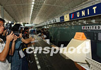 组图:香港直飞美国国际航班全部停航 2001年09月12日 16:55 ![]() 部分因美国纽约世界贸易中心等地恐怖袭击而滞留香港国际机场的旅客,12日中午焦虑的在候机室屏幕前,关注事态发展。中新社图 洪少葵 摄 ![]() 美国世界贸易中心的两栋大厦遭受飞机撞击爆炸的恐怖事件后,美国各地机场首次全线关闭,往来香港的至少14班航机12日受到影响取消。大批香港传媒聚集在香港国际机场的美国联合航空柜台前,关注事态发展。中新社图 洪少葵 摄