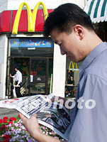 图文:美国连环袭击事件牵动北京舆论民情 2001年09月13日 03:41 ![]() 十三日晨,在北京麦当劳餐厅前,前来用餐的顾客关注报纸上报道美国遭袭消息。中新社记者 钱兴强 摄
