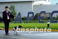 ![]() 上海警方出动警犬在APEC会议国际新闻中心巡逻,全球三千记者十四日开始进入清晨启用的新闻工作区。中新社记者 贾国荣 摄 |
