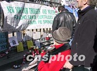 十二月十一日,“九一一”事件满三月,美国各地举行各种活动,对恐怖事件永不忘记。在纽约世贸大厦废墟附近的一座教堂前,市民缅怀遇难者。中新社图 徐德金 摄
