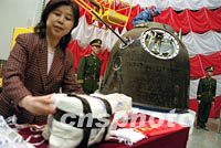 “神舟”三号返回舱开舱 太空“乘客”逐一亮相 2002年04月04日 16:20 ![]() “神州三号”飞船返回舱搭载物品开舱交接仪式,4日在中国空间技术研究院北京空间技术研制试验中心举行,解放军总装备部,中科院,中国航天科技集团公司等各界相关人士出席了交接仪式。中新社记者 王瑶 摄