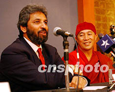 图文:台佛界捐款百万港币重修阿富汗巴米扬大佛 2002年05月17日 16:34 ![]() 5月16日台湾宗教界著名心道法师联同联合国千年世界和平峰会秘书长巴瓦金(Bawa Jain)(左)远道来港,在万豪酒店召开记者会,宣布由台湾世界宗教博物馆捐赠一百万港币给阿富汗,作为重建“巴米扬”大佛像经费。中新社图 洪少葵 摄