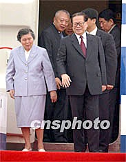 五年四次莅临香江 江泽民抵港参加回归庆祝活动 2002年06月30日 16:24 ![]() 中国国家主席江泽民和夫人王冶坪,6月30日下午乘专机抵达香港,出席香港回归祖国五周年大会暨香港特区第二届政府就职典礼活动,香港特区行政长官董建华登机迎接。中新社传真 任晨鸣 摄