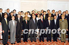图:江泽民主席与香港特区政府“高官”合影 2002年06月30日 22:15 ![]() 六月三十日晚,国家主席江泽民在香港出席特区政府成立五周年庆祝晚宴,并与“高官”及香港知名人士合影。潘索菲 摄