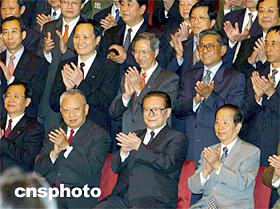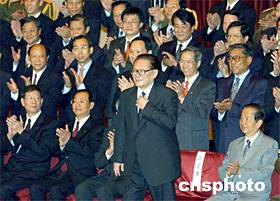 ![]() 江泽民鼓励中央驻港机构和中资机构代表要努力工作。七月一日,江泽民主席在香港君悦酒店会见中央驻港机构和中资机构代表并鼓励他们要努力工作。中新社传真 潘索菲 摄