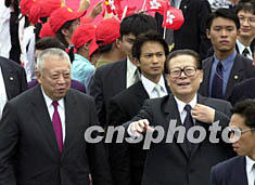 图:董建华为江泽民主席送行 2002年07月01日 18:19 ![]() 行政长官董建华7月1日带领香港众高官,在国际机场为国家主席江泽民送行。中新社图 洪少葵 摄