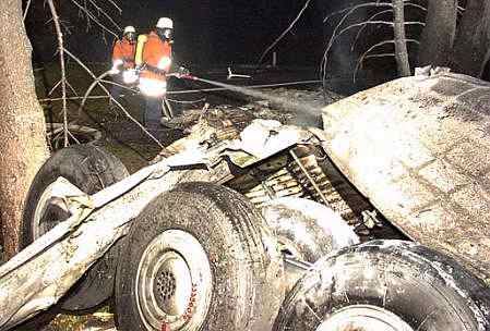 图:坠毁飞机图-154的部分残骸(一) 2002年07月02日 14:29 ![]() 德国当地时间7月1日夜(北京时间2日晨),一架DHL公司的波音757货机和俄罗斯图-154客机在德国巴登-符腾堡州于伯林根镇上空相撞并坠毁,至少已造成71人死亡。图为图154飞机的部分残骸。(春风)