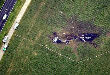 图文:俯瞰飞机残骸 大片地面被烧焦 2002年07月02日 19:54 德国当地时间7月1日夜(北京时间2日晨),一架DHL公司的波音757货机和俄罗斯巴什基尔航空公司的图-154客机在德国巴登-符腾堡州于伯林根镇上空相撞并坠毁,至少已造成71人死亡,其中包括52名儿童。图为散落在地上的飞机残骸,可见大片地面被烧焦。(春风)