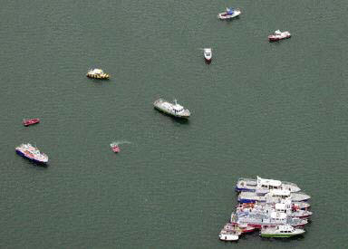 图文:搜救船只在博登湖上搜寻飞机残骸 2002年07月02日 19:56 德国当地时间7月1日夜(北京时间2日晨),一架DHL公司的波音757货机和俄罗斯巴什基尔航空公司的图-154客机在德国巴登-符腾堡州于伯林根镇上空相撞并坠毁,至少已造成71人死亡,其中包括52名儿童。图为搜救船只在博登湖上搜寻飞机残骸。(春风)