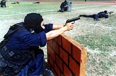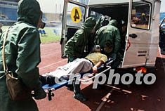 福建省首次多警种、跨地区的反恐怖活动处置突发事件综合演练二十日在福建省体育中心举行,三千多名警察参加了此次实战技能演练。。作者:刘可耕