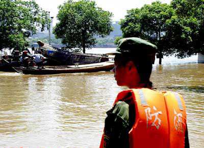8月11日以来,我省自北向南再次发生新的降雨过程。特别是从8月18日开始,全省普降中到大雨,部分地区降暴雨,主要集中在湘中、湘北及湘西南地区,湘、资、沅、澧四水及洞庭湖水位持续上涨。截止20日14时,湘江长沙站水位37.4米,超警戒水位2.4米,湘江第六次洪峰即将到来。洞庭湖城陵矶水位33.5米,超警戒水位1.5米。目前,三口(松滋、藕池、太平)四水入湖流量45127立方米每秒,出湖流量19300立方米每秒,洞庭湖水位仍将攀升。2O日,岳阳县杨柳垸、毛家湖垸,湘阴县湘滨垸,汨罗市屈原垸等处大堤分别出现翻沙和管涌等险情;益阳桃江县花果山乡发生管涌群;衡山县境内发生山洪。邵阳市市区4条主要街道被淹;207国道双牌段被洪水冲毁,交通中断,形势十分危急。湖南省委、省政府宣布全省进入紧急防汛期。为夺取今年抗洪抢险的胜利,省军区号召:
