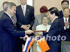 双方重申,决心继续支持双方为维护各自国家主权、独立和领土完整所作的努力。俄方重申支持中方在台湾、西藏问题上的原则立场和打击“东突”恐怖分裂势力的努力。中方支持俄方打击车臣恐怖和分裂势力的努力。