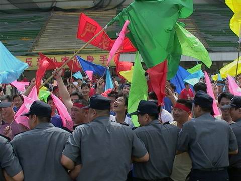 今天上午,福建省体育中心场内出现了数百名“球迷”,在一片“打倒黑哨”的口号声,“绿茵场”内乱成一团,摔矿泉水瓶,砸酒瓶,甚至趁机放火,一时“狼烟四起”。随着“事态”的发展,福建省公安机关和武警部队的各主要警种陆续闻讯赶来。