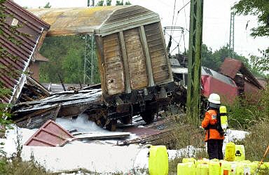 两列货车的司机都受了伤,并有数节车厢起火,当地大约250名居民随即被疏散。
