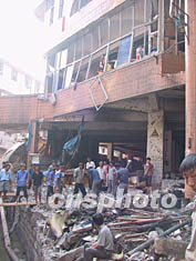 记者今天在现场了解到,发生爆炸的地方不仅仅只是农贸市场,还有与市场相邻的长江橡胶厂等地区,甚至一家与农贸市场相隔一条大马路的餐馆亦未能幸免,这家餐馆目前已面目全非,窗户及墙上的玻璃已全部震碎。