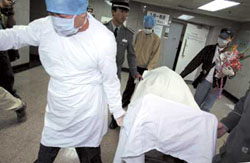 20日零时35分,高枫的父母在别人的搀扶下离开病房,表情十分凝重。20日1时4分,高枫遗体从病房中推出,送至太平间区的告别室。(张学军、翟佳)