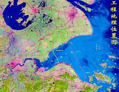 计划于2003年开工的杭州湾大桥全长36公里,将是世界上最长的跨海大桥。大桥南起宁波慈溪,北及嘉兴乍浦,横跨杭州湾喇叭口江面。桥面设计为6车道高速公路,设计时速100公里,使用寿命100年以上。