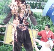 台湾爱国同心会等团体成员上午在“立法院”门外,以鞭打画着李登辉脸谱人偶等方式,表达对李登辉的不满。他们要求李登辉必须为自己的“卖国”言行道歉,否则他们将效法当初向李登辉泼红墨水的史力行,“李登辉走到哪里,就跟到哪里”。