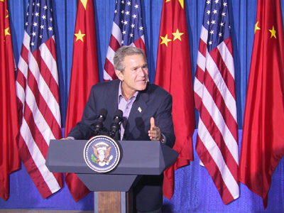 中新网得州克劳福德十月二十五日电(记者吕振亚)中国国家主席江泽民今天在与美国总统布什会晤时强调,中国一贯支持朝鲜半岛无核化,希望半岛保持和平与稳定。