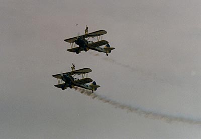 这届展会,英国UBB空中杂技表演队驾驶老式波音-斯蒂曼尔双翼机首次作了精彩的空中杂技表演。这届航展,虽然一直天气恶劣、雨丝绵绵,但各国空中勇士们仍然竞技蓝天,中国陆军航空兵也多次冒雨进行飞行表演,但为保证绝对安全,部分表演队基本上困守在地面。由于各种航展设施已进一步完善,加上雨天观众稀少,所以这届航展秩序良好。(远林)