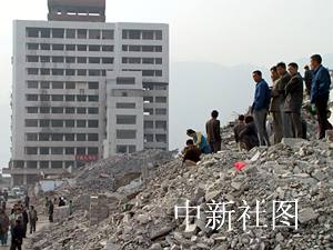 今天的集中爆破吸引了众多的奉节老百姓观看。他们都怀着一种对旧城挥之不去的感情,有的早早地从新县城赶来,在爆破之前最后一次目睹旧城的建筑物;有的则早早地抢站在高楼的最佳位置观看爆破过程,以便留下自己祖祖辈辈居所的最后印象。