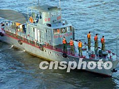 图为边防检查艇在“被劫持”船舶周围实施水面警戒巡逻。