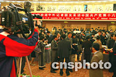 中新社北京十一月六日电(记者张朔)中国共产党第十六次全国代表大会新闻中心今晚在北京梅地亚宾馆举行酒会,欢迎采访本次大会的中外记者。