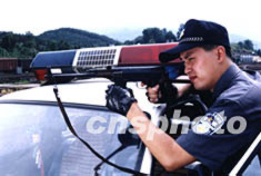 一名铁路民警近日在福建铁路来舟站派出所举行的“反恐”演练中用“警用微冲”朝“恐怖分子”瞄准。作者:甘洋和