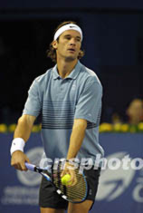下午四时整,本届大师杯赛夺标热门人物之一萨芬和西班牙高手莫亚,以一场“火星撞地球”式的强力对局拉开了本次大师杯赛的赛事帷幕;在此之后,目前排名世界第一的休伊特也将出场迎战新科法网状元科斯塔。今天另一对出场捉对厮杀的强手是瑞士选手费德勒和西班牙选手费雷罗。而本届夺标另一大热门阿加西今天暂无赛事,以逸待劳。