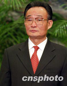 中国共产党十六届一中全会十五日上午在北京人民大会堂举行,胡锦涛、吴邦国、温家宝、贾庆林、曾庆红、黄菊、吴官正、李长春、罗干等九人当选为新一届中共中央政治局常委。图为新当选的常委吴邦国。作者:毛建军