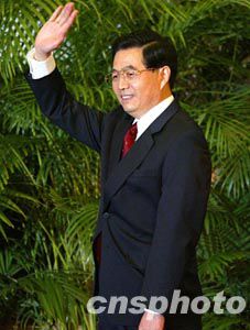 胡锦涛第一个进入记者的视野,随后,吴邦国、温家宝、贾庆林、曾庆红、黄菊、吴官正、李长春和罗干依次走进,一边走向主席台一边微笑着向人们挥手示意。