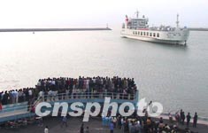 记者看到,当下午四点十分庞大的粤海铁一号缓缓得开进南港港池的时候,一抹阳光缓缓地照射在平静的港湾,等候在码头上的数千名海南百姓发出了热情的欢呼声……海南八百万人民的跨海梦就要圆了。