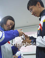 在“世界艾滋病日”到来前夕,北京市第二中学在学生中开设了《艾滋病毒与艾滋病》选修课,使中学生们了解艾滋病毒的传播渠道及艾滋病的防治方法。两名学生在课堂上用针管交换各自杯中的液体,每一次交换代表一次性接触,假设为艾滋病病毒杯中的液体立即变色,表明已被艾滋病病毒感染。它告诉中学生们:婚前、婚外性行为是感染艾滋病的重要因素,哪怕只有一次。作者:史利