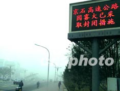 北京市交通局有关负责人告诉记者,由于八达岭地区雾气并不重,因此八达岭高速路并未关闭。不过其他地区由于雾气过重,交管部门已经紧急封闭了京石、京沈、京开、京津塘四条高速公路。这位负责人告诉记者,何时重新开放这几条高速路要视天气情况而定。