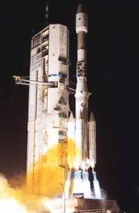 阿丽亚娜5型是新研制的火箭,可以载重10吨,是欧洲航天局“一箭双星”计划的核心。如果发射成功的话,可以一次把两枚重型卫星送入轨道。