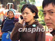 图为被救上岸的旅客向家报平安。