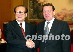 江泽民、胡锦涛分别会见来访的德国总理施罗德