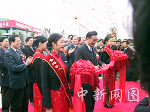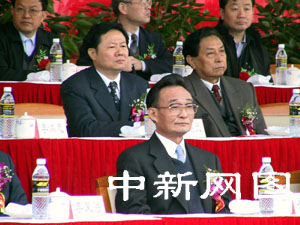 十点四十六分,中共中央政治局常委、国务院副总理吴邦国在栈桥火车前为粤海铁开通剪彩。