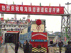 中新网海口1月7日电(记者 莫成雄)天堑变通途,天涯不遥远。今天上午,举国瞩目的中国第一条跨海铁路通道——粤海铁路通道轮渡工程正式开通,火车乘铁轮穿过琼州海峡隆隆驶上了琼州大地。祖国第二大岛——海南岛从此结束了与大陆不通铁路的历史,海南苦心构筑的海陆空“立体大交通”基本建成,海南插上了腾飞的翅膀,进入了高速发展的新时期。