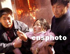 消防官兵及附近群众冒着窒息的浓烟在烈火中救出12人。