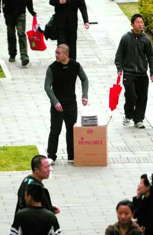记者26日下午在这里看到,一个男人坐在通道里,手拿计算器,1个多小时内陆续有近30人出入,大家把钱交到男子手中,随后分批离开。一个操着东北口音的男子说:“我是来帮忙卖盒饭的,中间拿提成。”