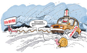 雪天行车多加小心是对的,但也不要盲目紧张。精神紧张在遇到紧急情况时会因为慌乱或呆滞失去反应,无法迅速处理情况。放松心情,减速行驶,行驶中注意前方和三个后视镜,并注意左右两侧的车辆,做到心里有数。