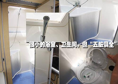 麻雀虽小但五脏俱全,房车虽然比不上房子但是胜似一个温馨的家。在房车的后部,独立设计的卫生间以及浴室真的是太周到了,这里的每一件卫具都是为了房车紧凑的空间而特殊设计的。