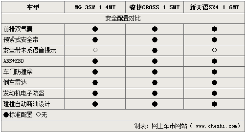 跨界家用轿车不仅需要优良的动力,优秀的操控反应,其安全性能的表现也是必不可少的条件之一。三款车型均通过多项完善的配置增加安全系数,不过即将上市的骏捷CROSS凭借细节表现,如安全带语音提示等设计令乘员的安全感明显提升。